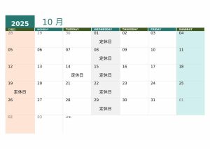 当社の10月のお休みは以下の通りとなります。(毎週水曜日・第2火曜日・第3日曜日)